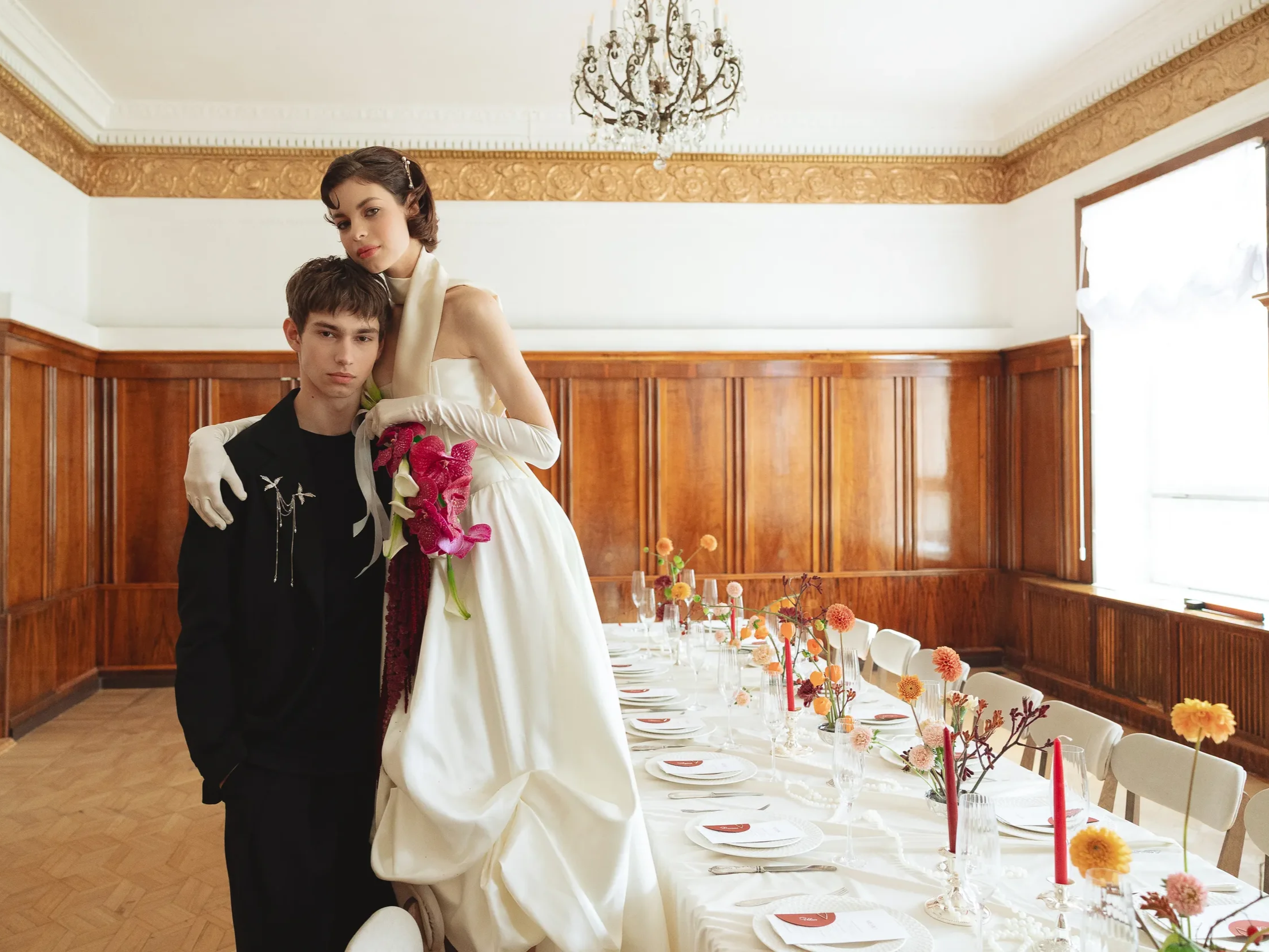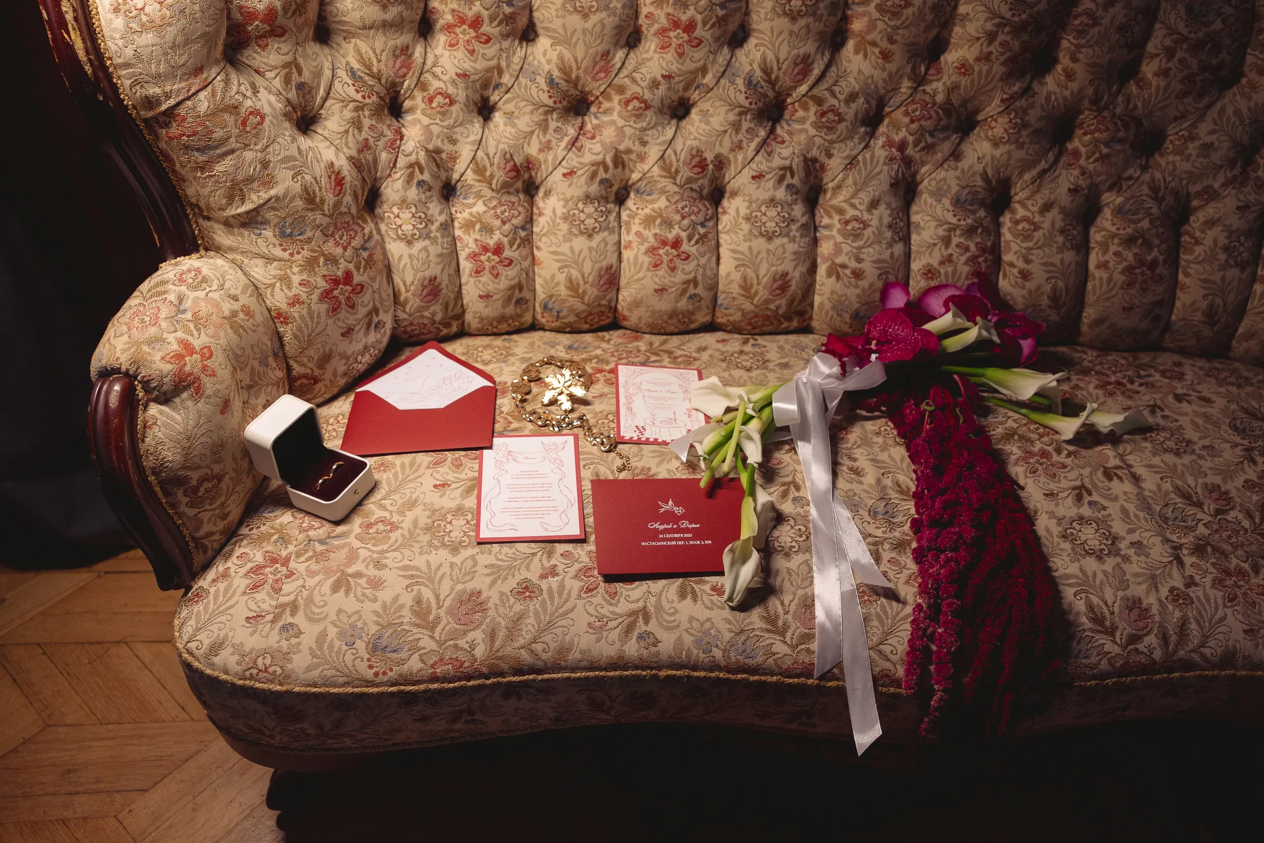 Wedding invitations and paper details play a key role here. Soft textures, classic typography, and a restrained color palette create a cohesive aesthetic from the very beginning. Invitation suites, envelopes, rings, and other carefully arranged elements are often photographed up close, and when styled with intention, they elevate the entire narrative.
