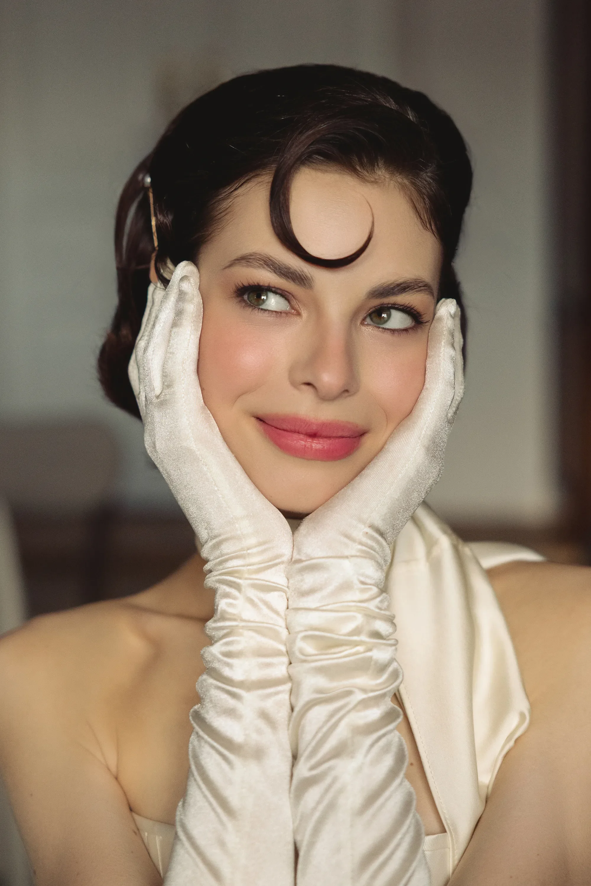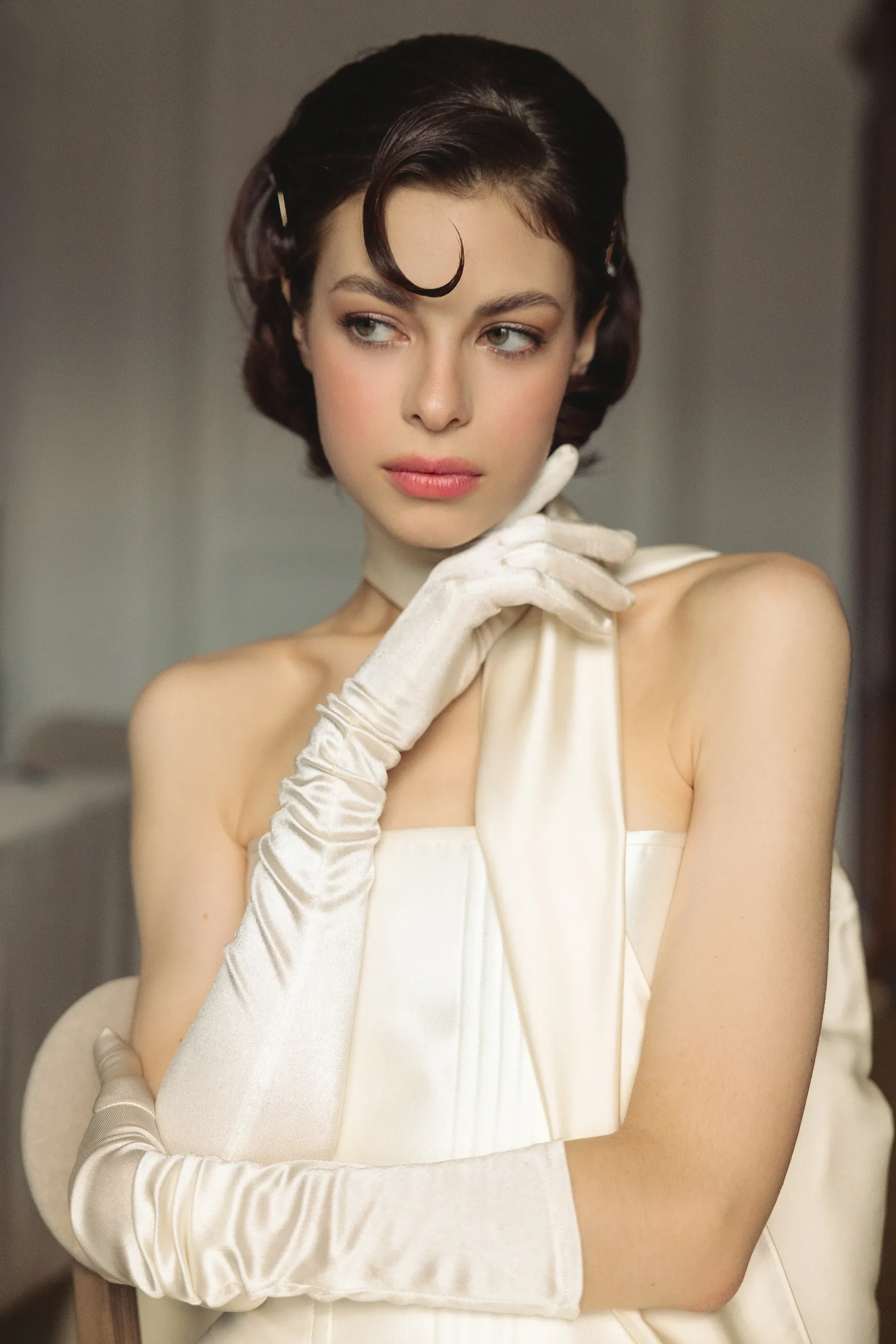 The dress and accessories create the foundation of the look, but it is the smaller, styled details that bring everything together. A clean silhouette and structured fabric set a refined tone, allowing every element to feel intentional rather than excessive. Subtle additions like long gloves introduce a vintage reference while maintaining a timeless, editorial feel.